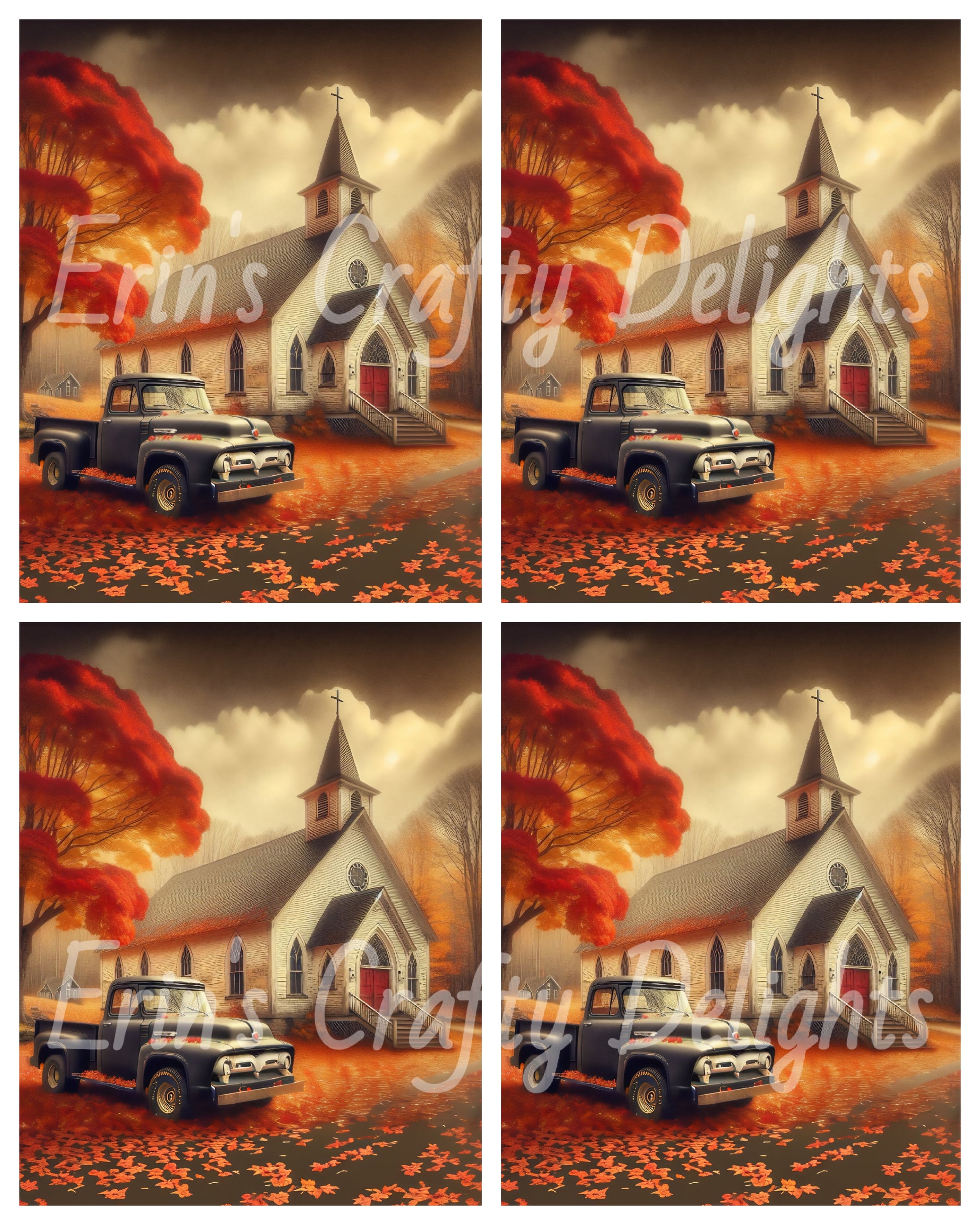 1 MS Autumn Black Truck and Church 8x10 Mix Size Printable Set