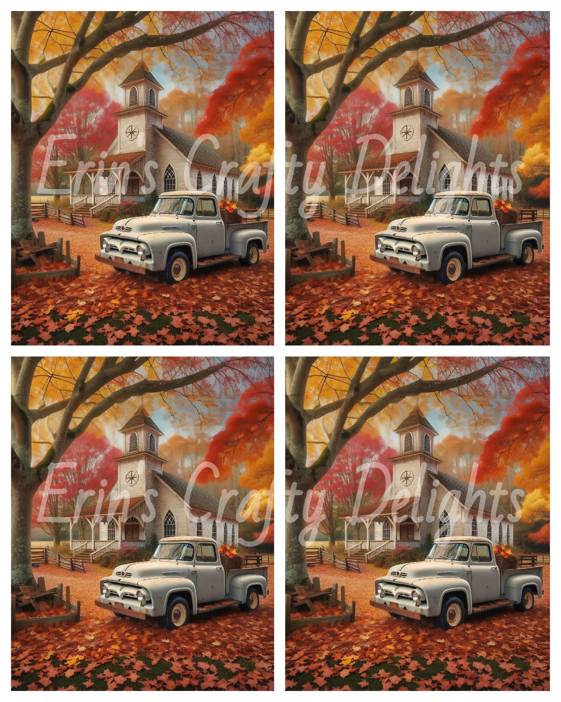 1 MS Autumn White Truck and Church 8x10 Mix Size Printable Set