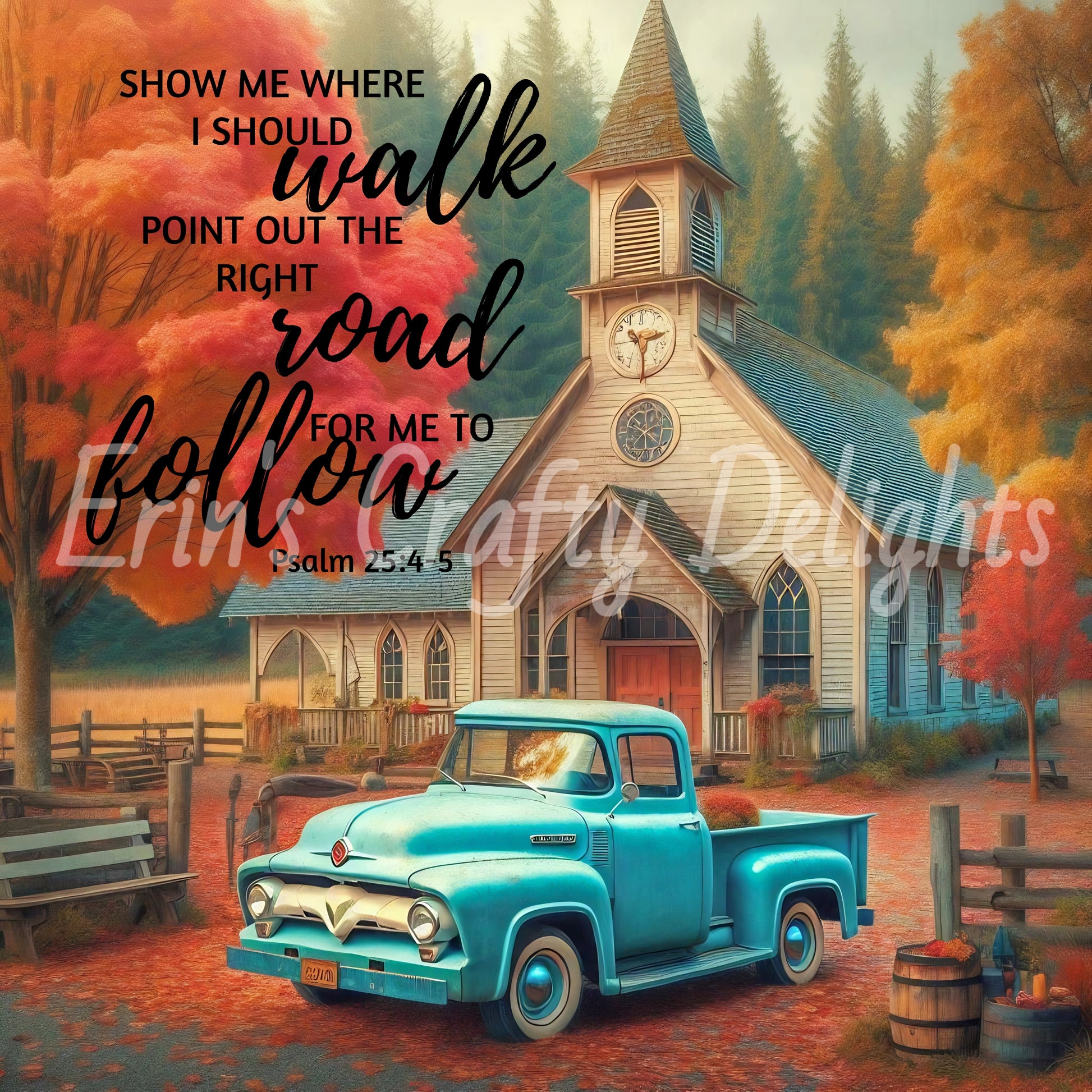 1 Inspirational Autumn Blue Truck and Church