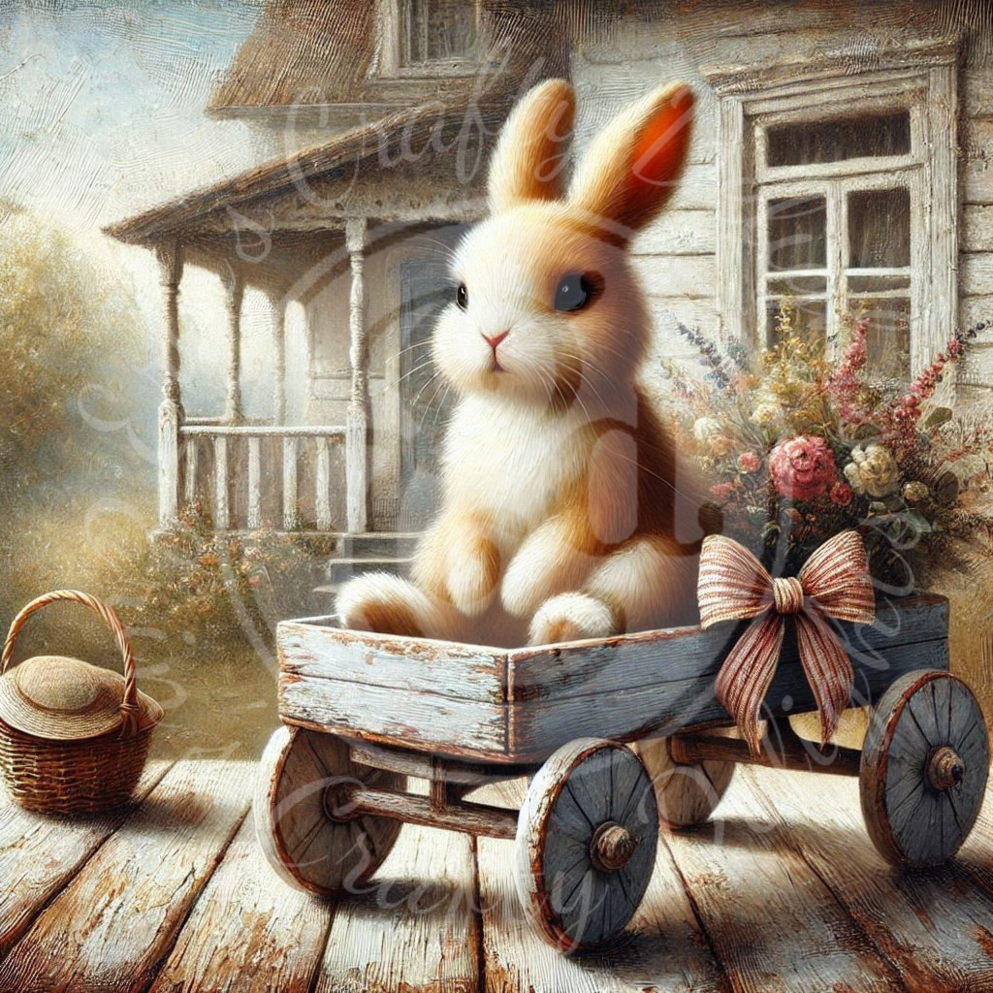 17 Bunny in a Toy Wagon