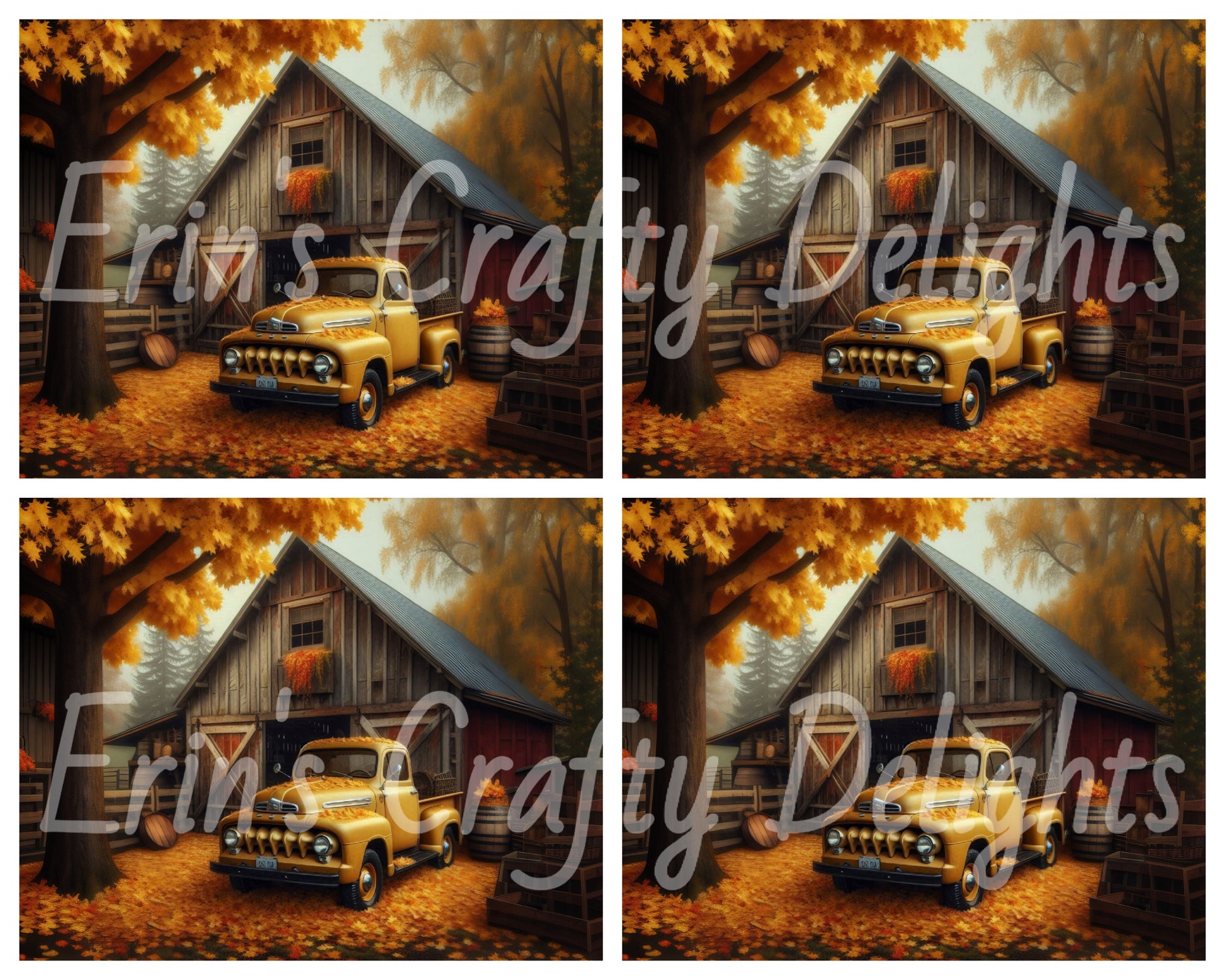 2 Autumn Yellow Truck and Barn