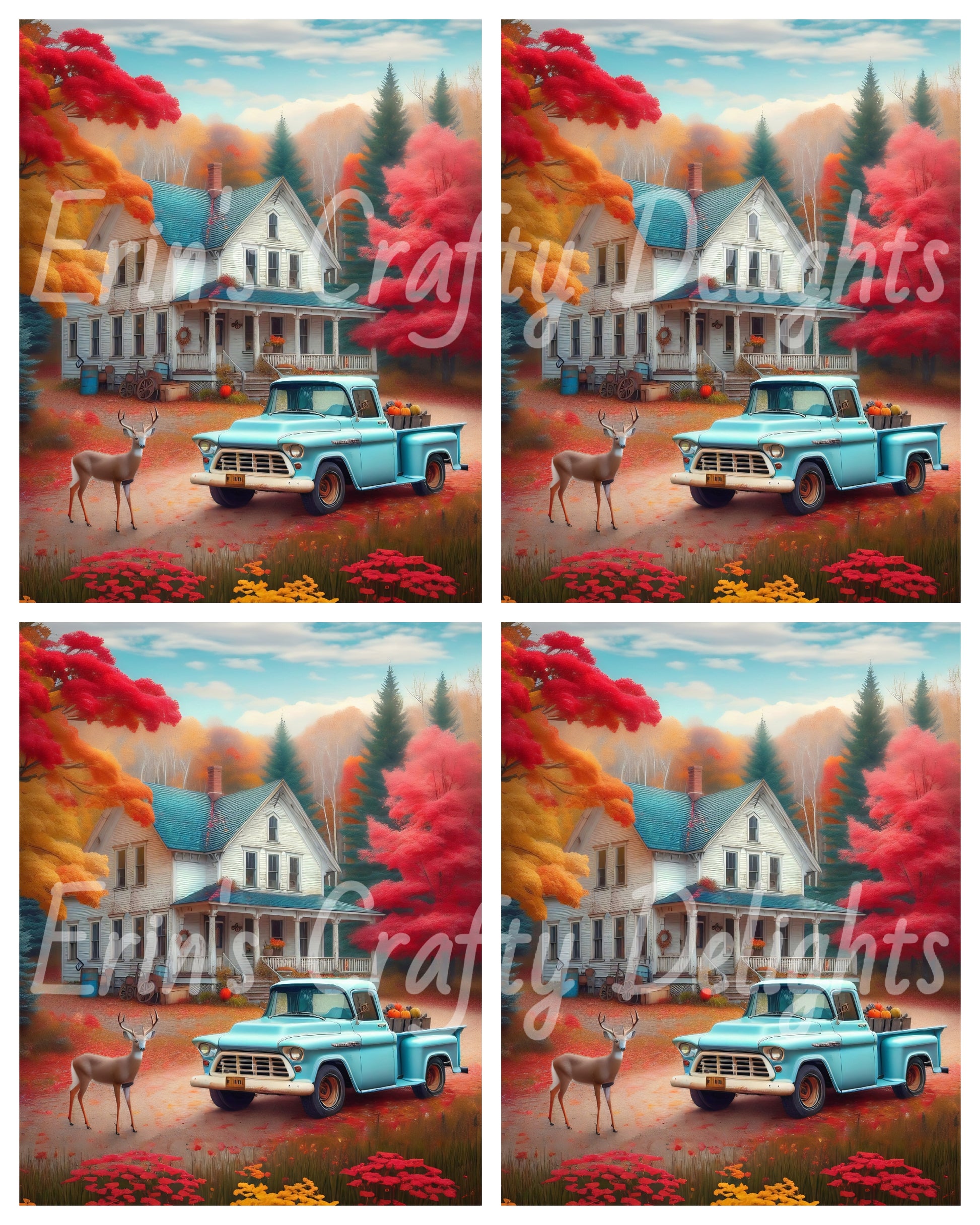 2 Autumn Blue Truck and Farmhouse
