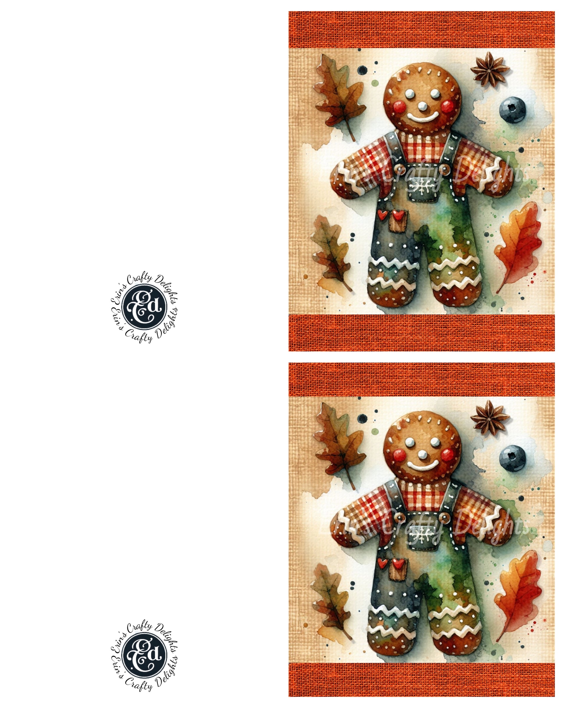 2 Rustic Gingerbread Man Fall Thanksgiving Card