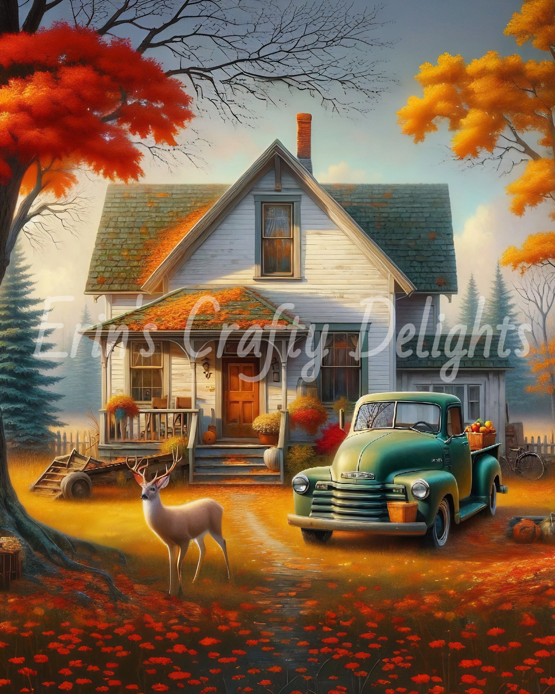 1 MS Autumn Green Truck and Farmhouse 8x10 Mix Size Printable Set