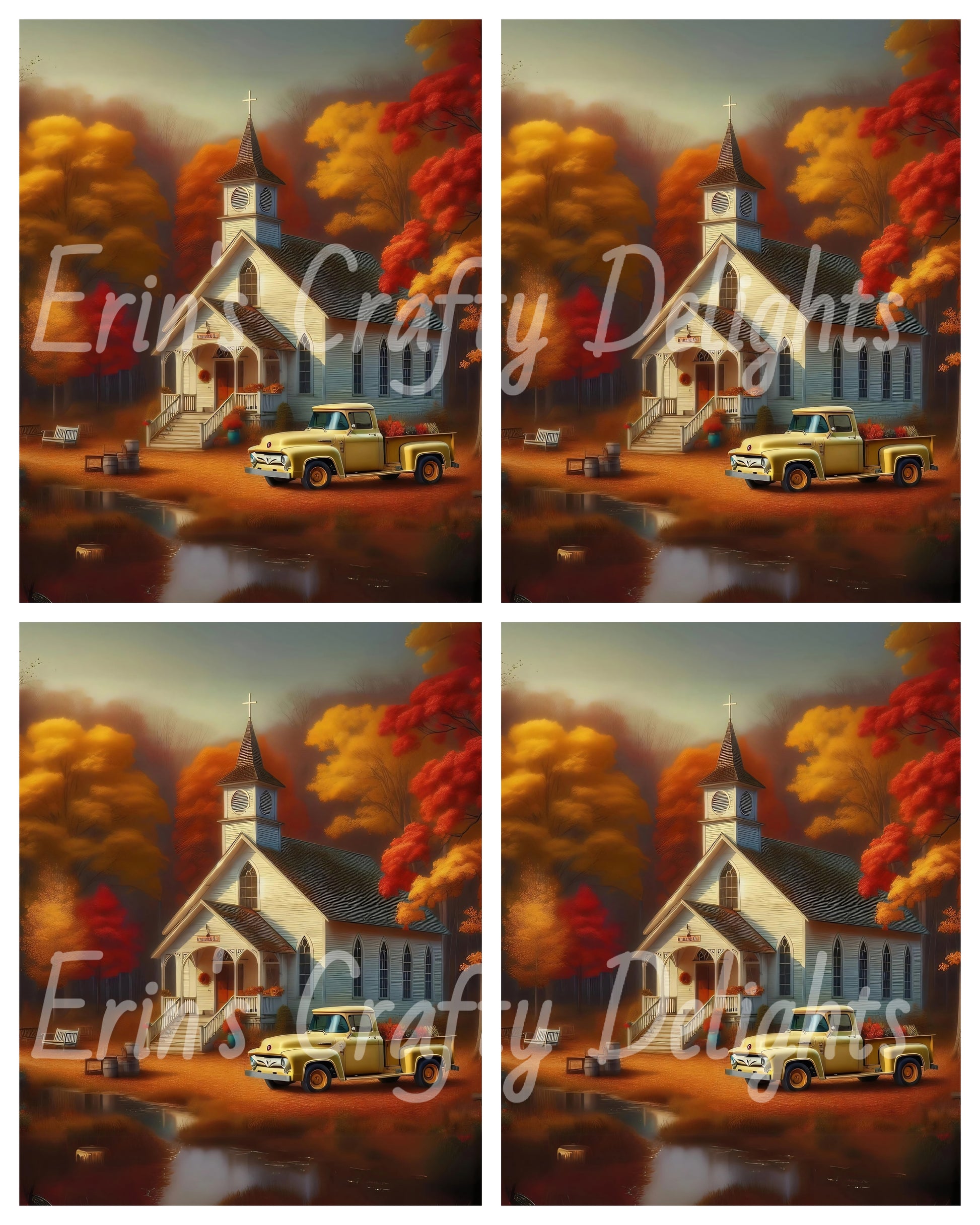 1 MS Autumn Yellow Truck and Church 8x10 Mix Size Printable Set