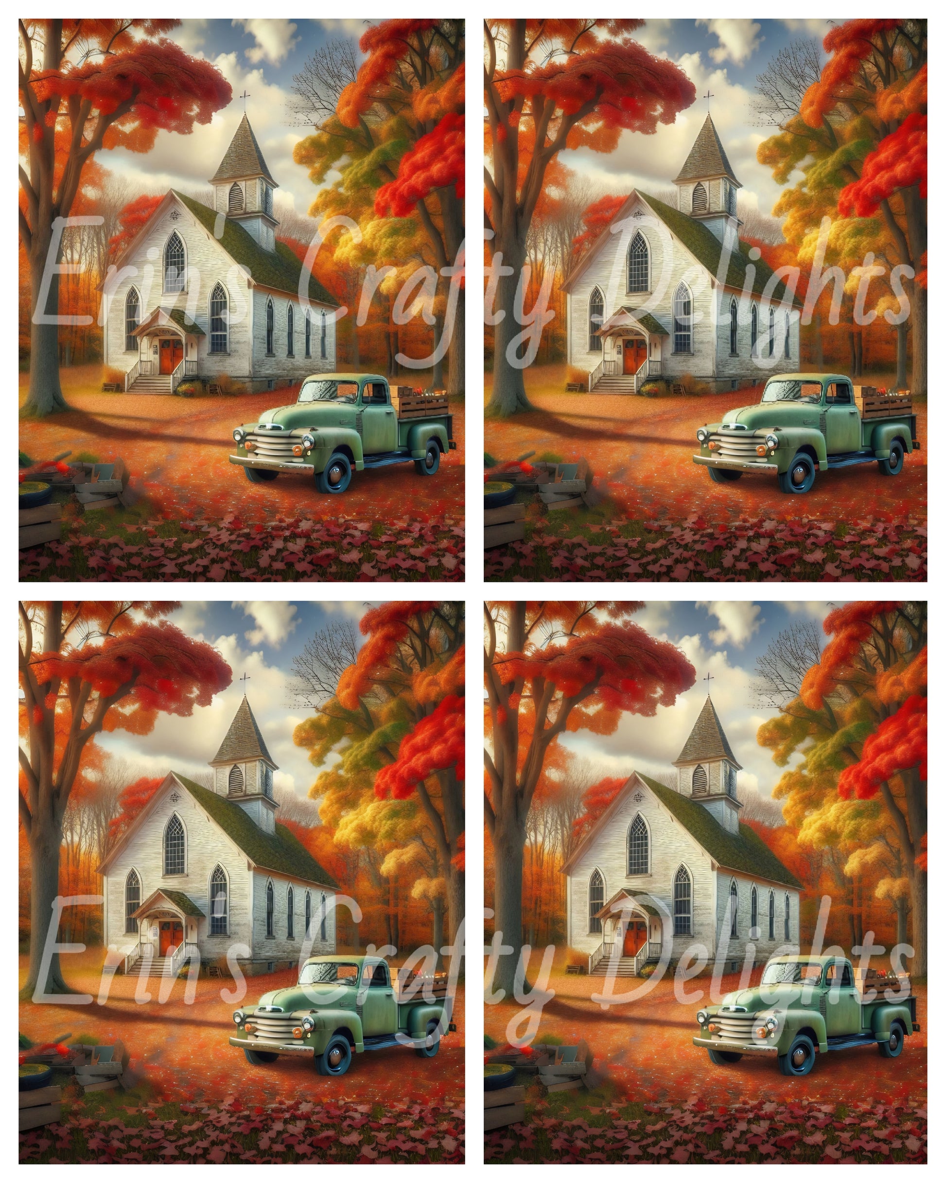 1 MS Autumn Green Truck and Church 8x10 Mix Size Printable Set