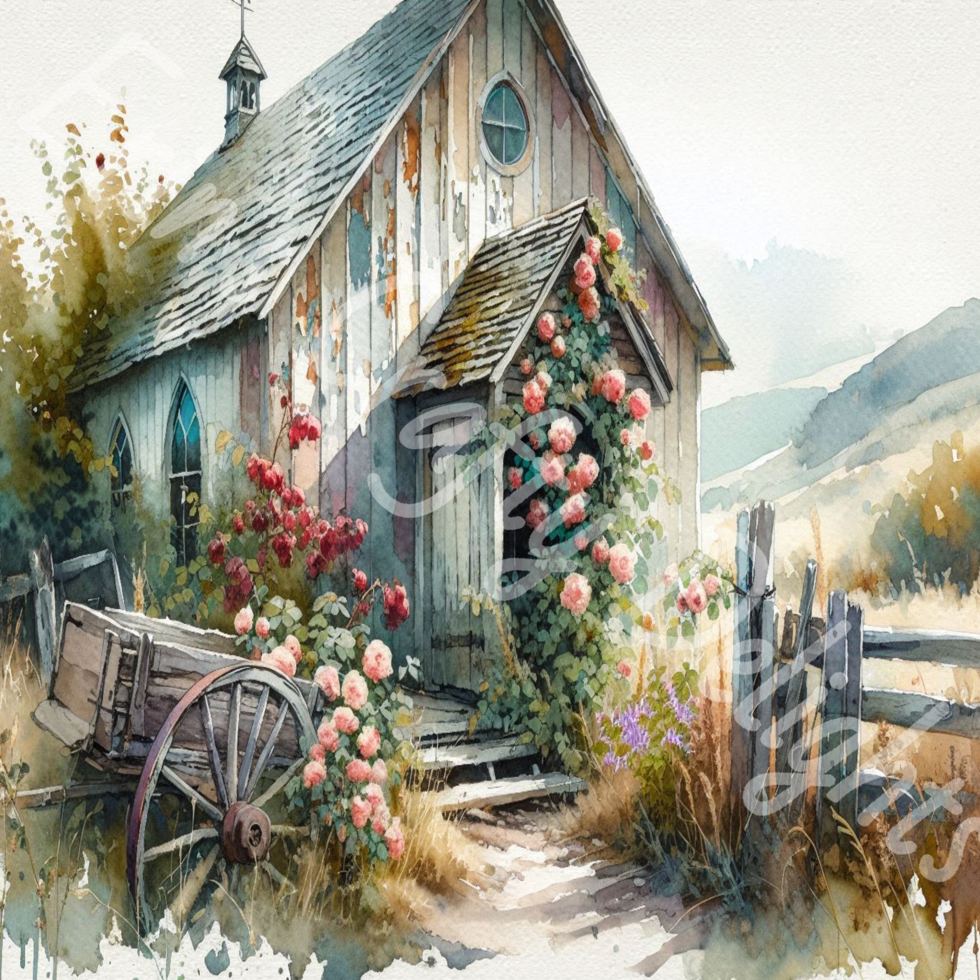 Sweet little churches in the woods. Comes with Freeform, 8 inch square, 4 - 4x6, 8x10 L and 8x10 portrait sizes.