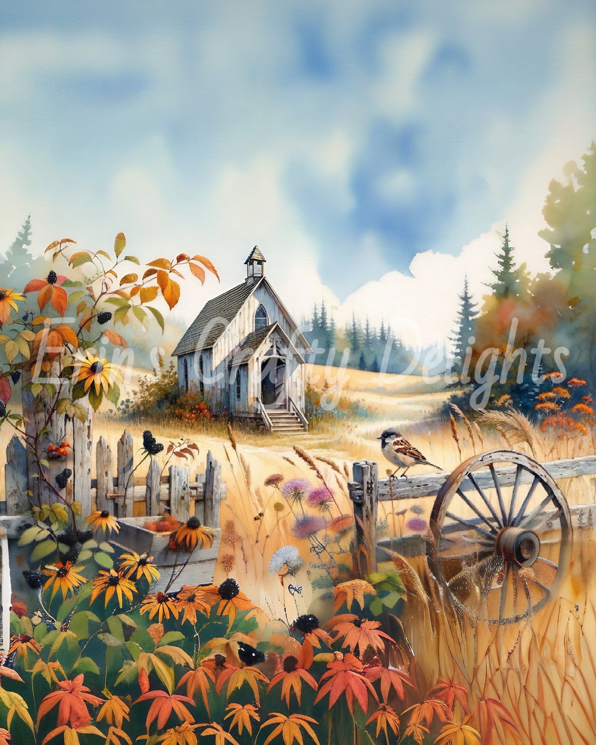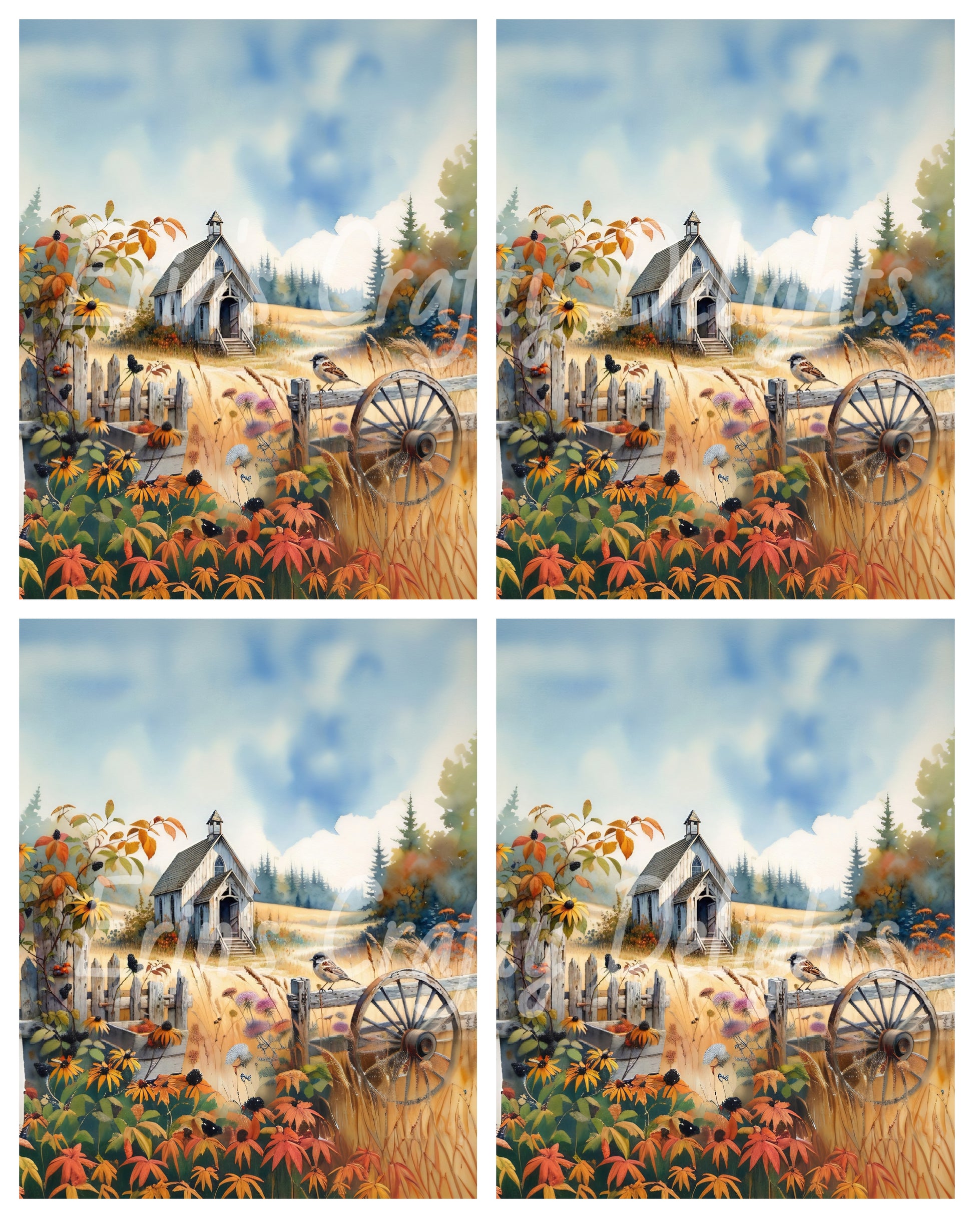 Sweet little churches in the woods. Comes with Freeform, 8 inch square, 4 - 4x6, 8x10 L and 8x10 portrait sizes.