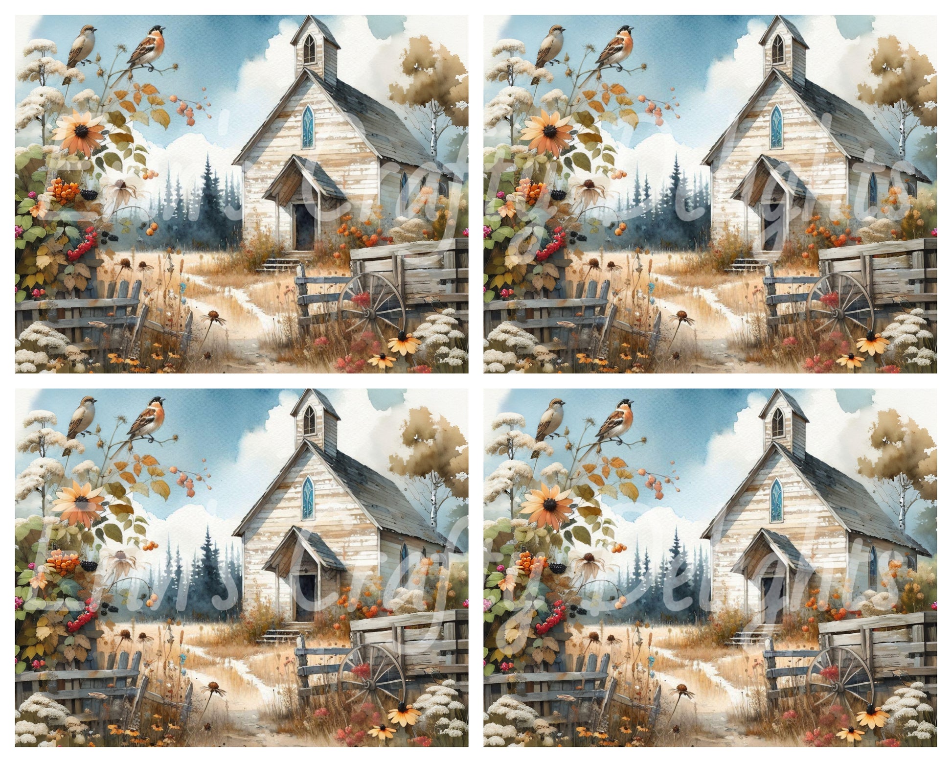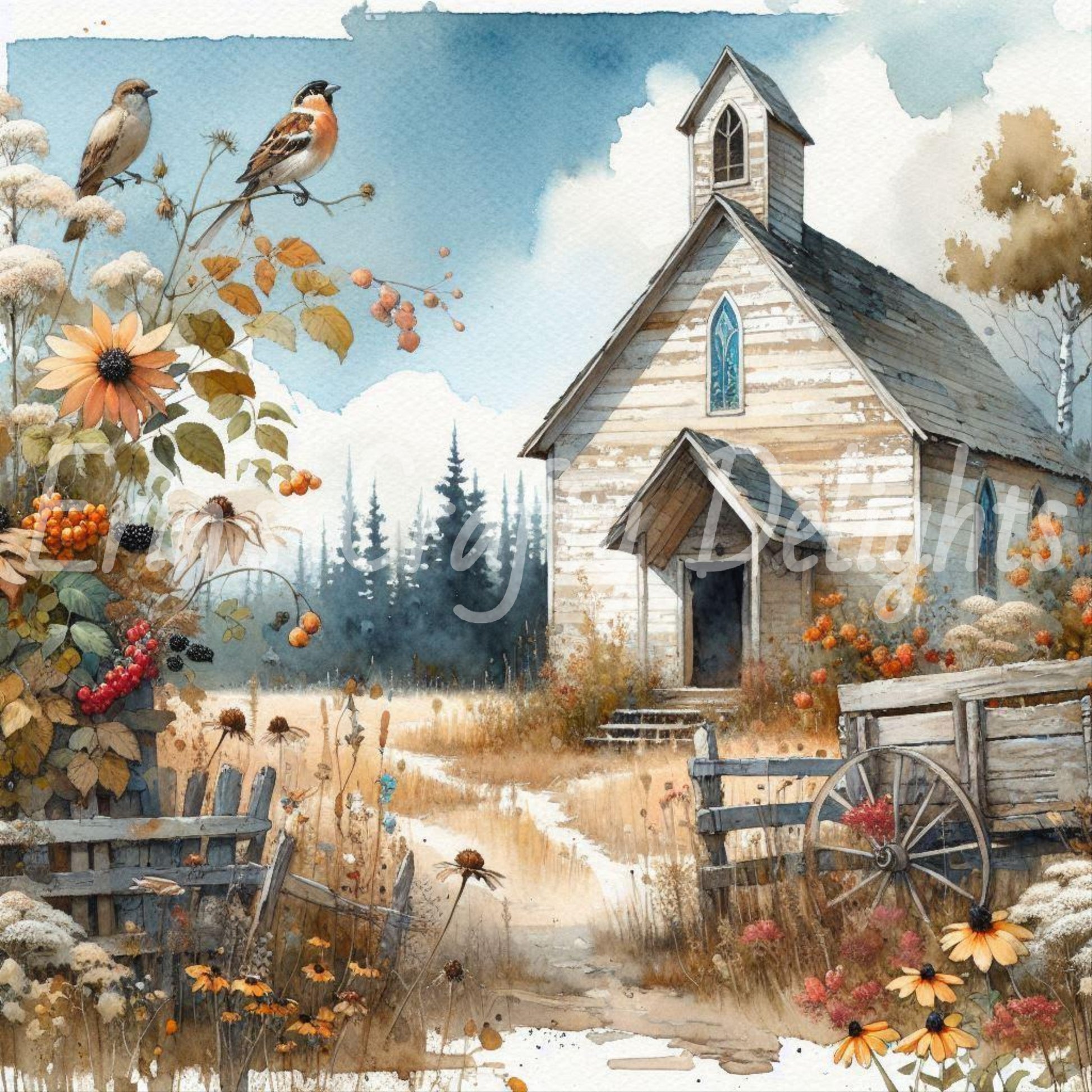 Sweet little churches in the woods. Comes with 8 inch square, 4 - 4x6, 8x10 L sizes.