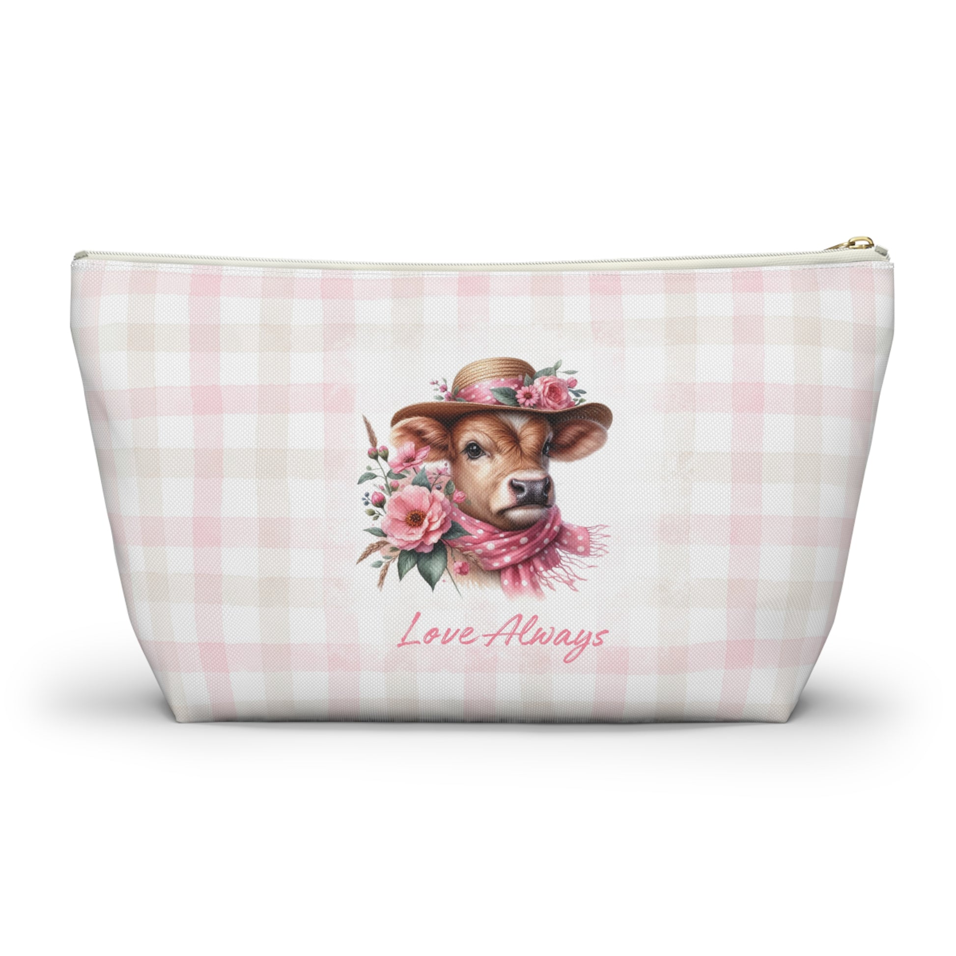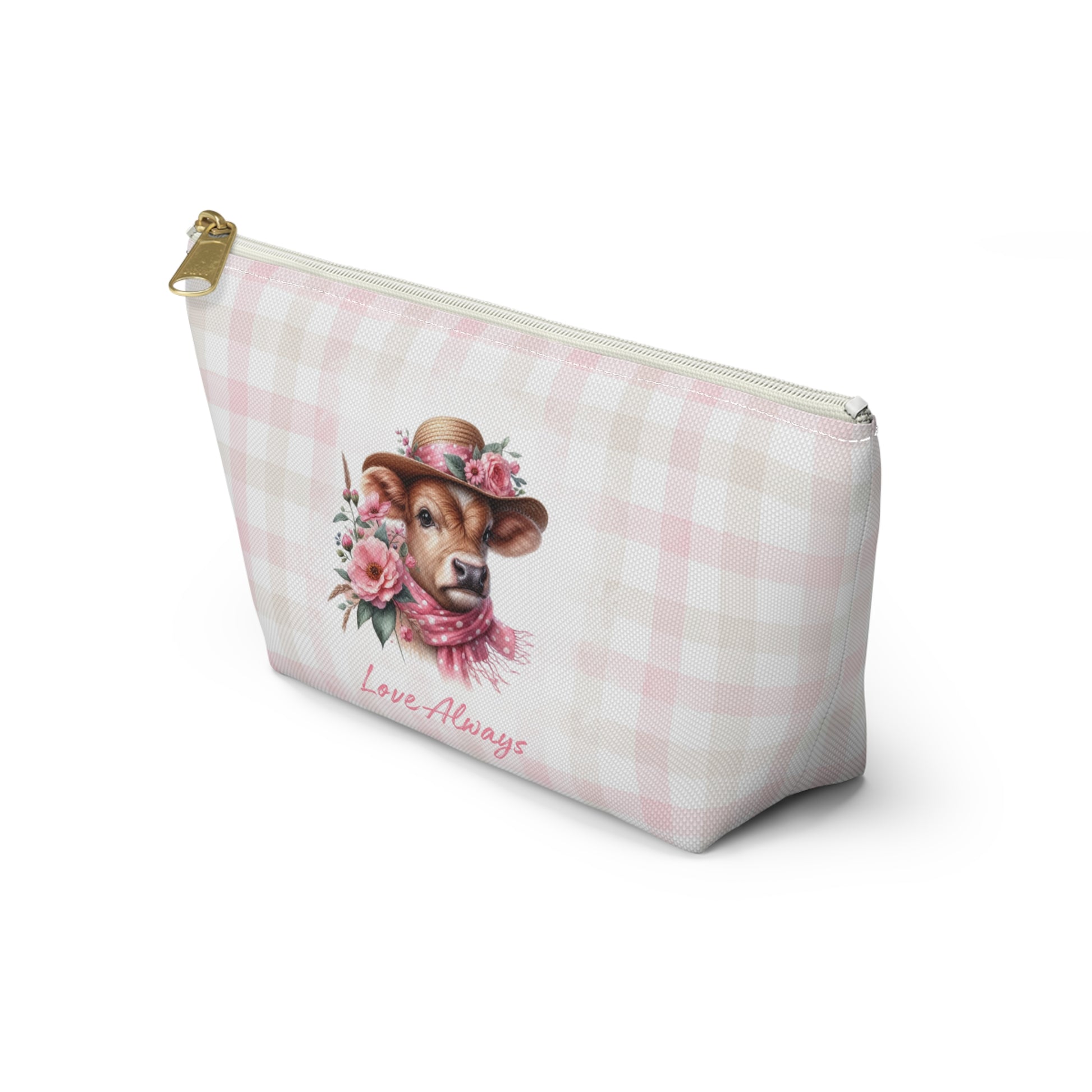 Accessory Pouch - Love Always Dressed Up Cow Gingham Check Design