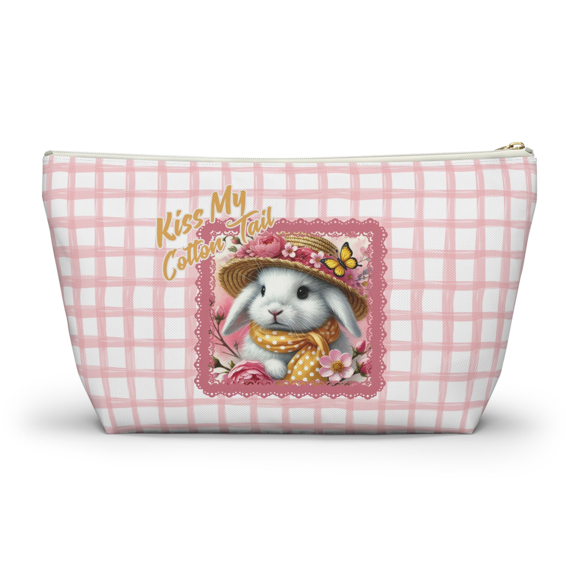 Accessory Pouch w T-bottom - Kiss My Cotton Tail! Bunny Pink Grid Pouch Design