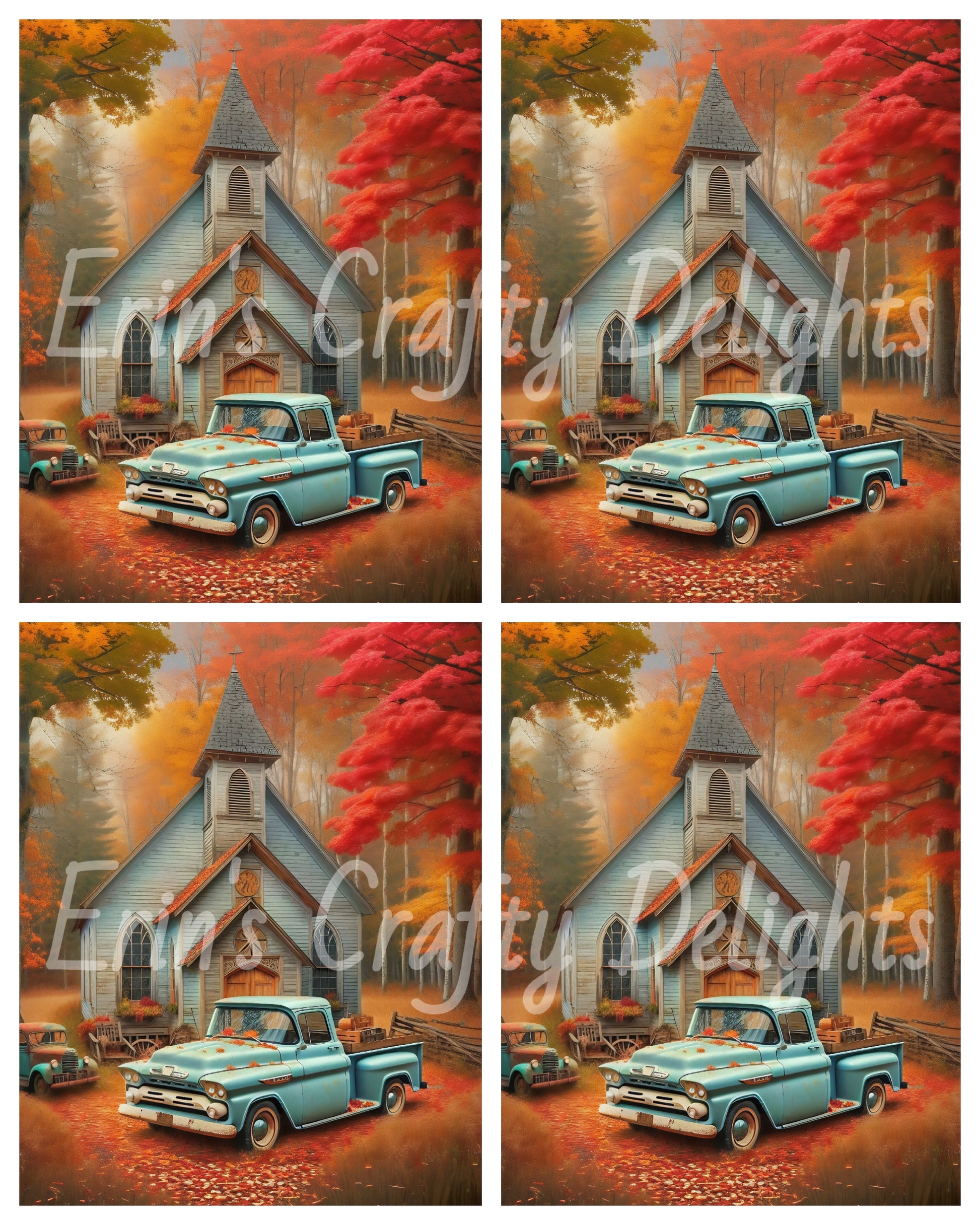 1 MS Autumn Blue Truck and Church Mix Size Printable Set