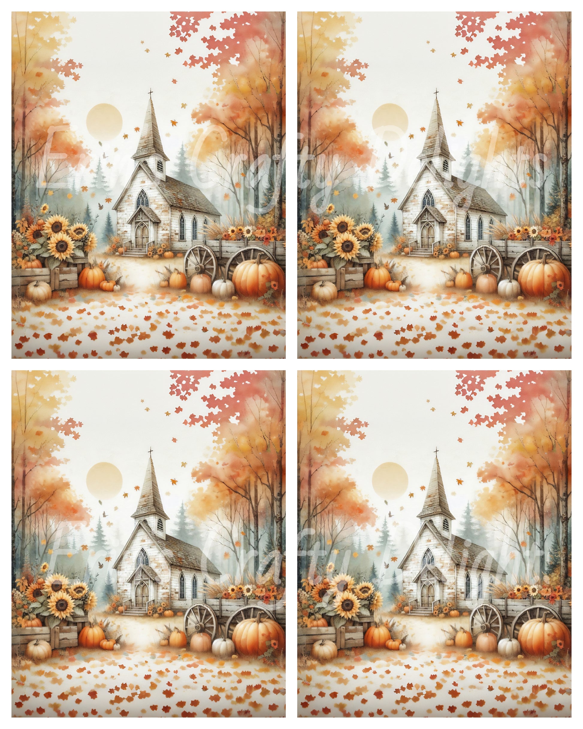 Sweet little churches in the woods. Comes with Freeform, 8x8 inch sq, 4 - 4x6, 8x10 L and 8x10 portrait sizes.