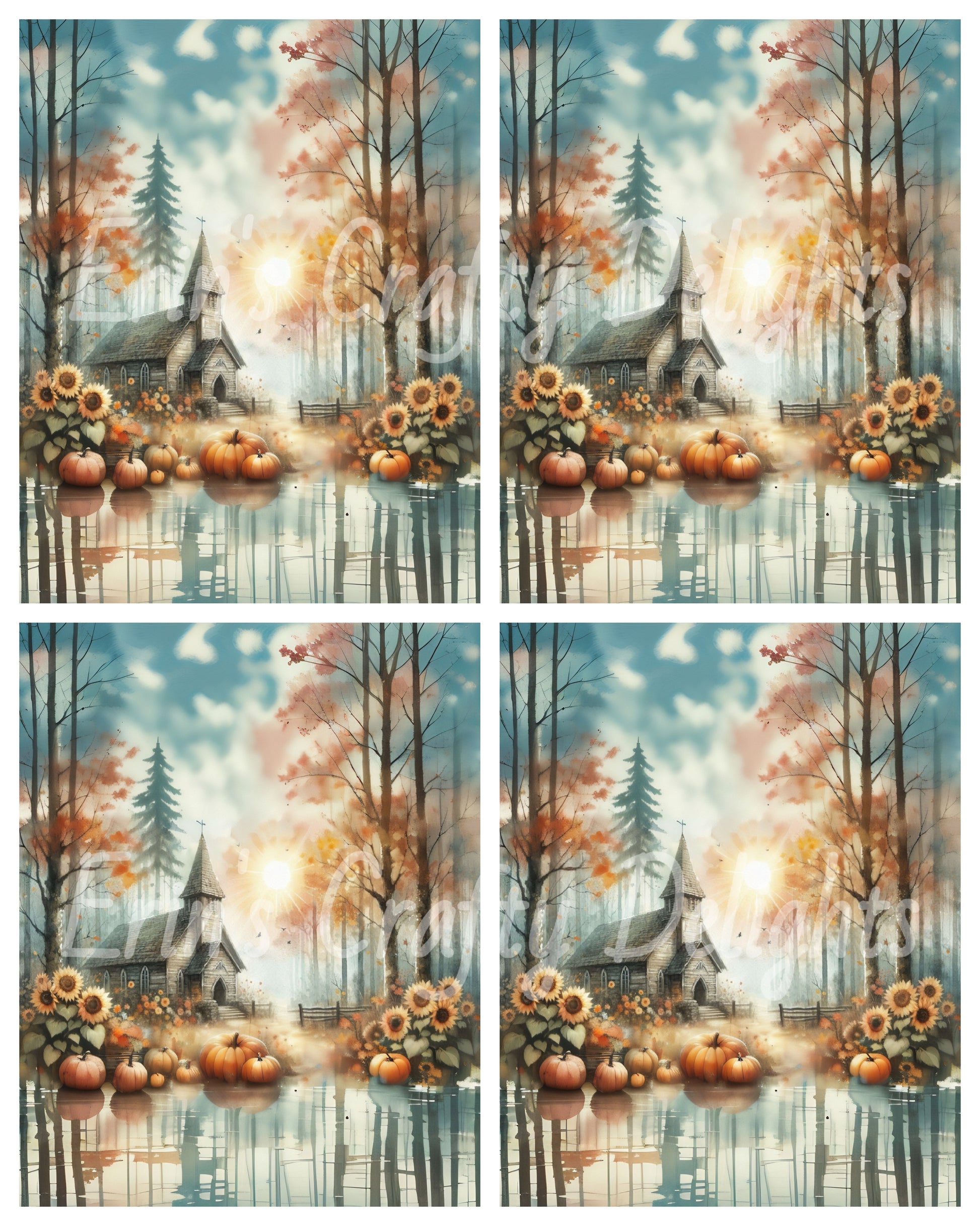Sweet little churches in the woods. Comes with Freeform, 8x8 inch sq, 4 - 4x6, 8x10 L and 8x10 portrait sizes.