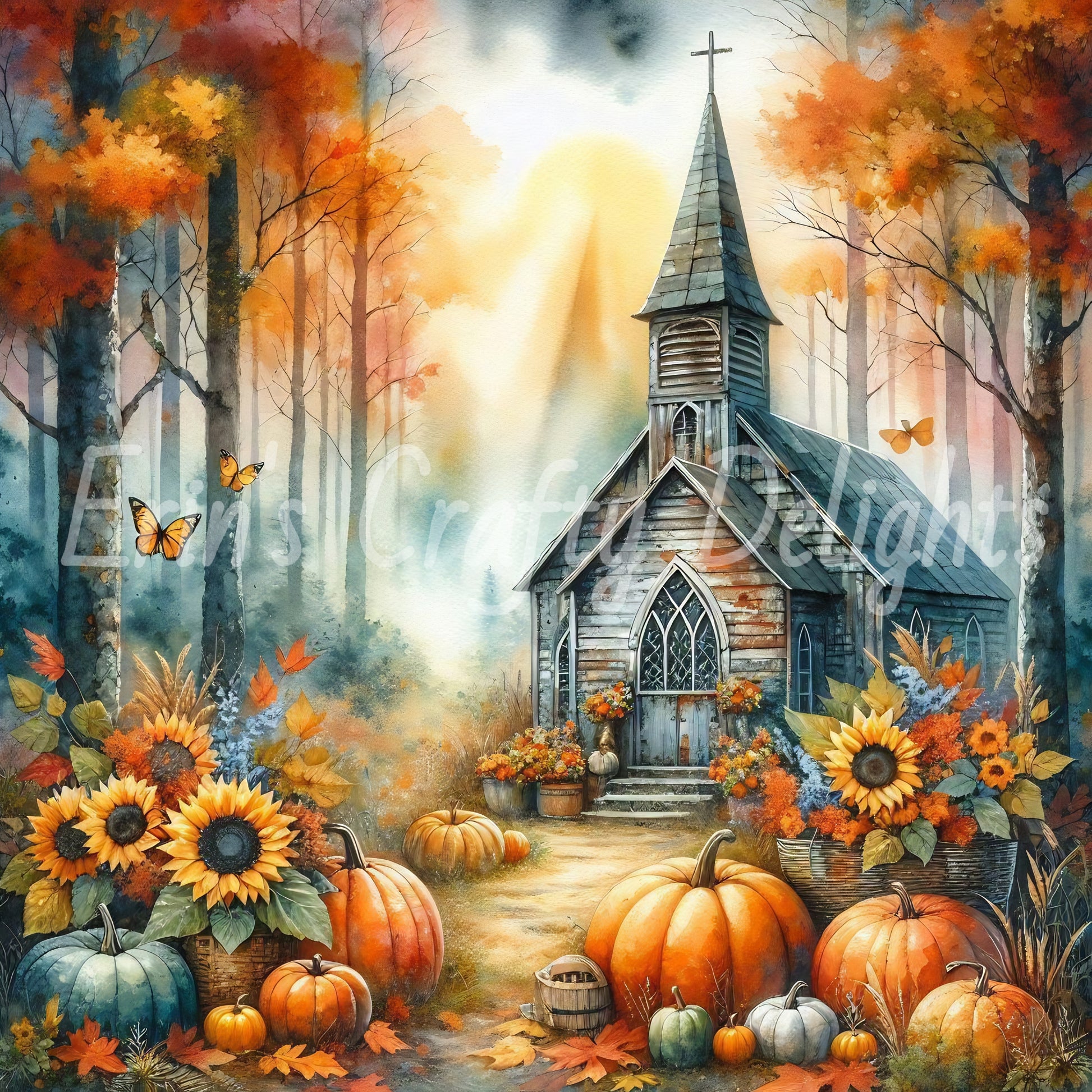 Sweet little churches in the woods. Comes with Freeform, 8x8 inch sq, 4 - 4x6, 8x10 L and 8x10 portrait sizes.