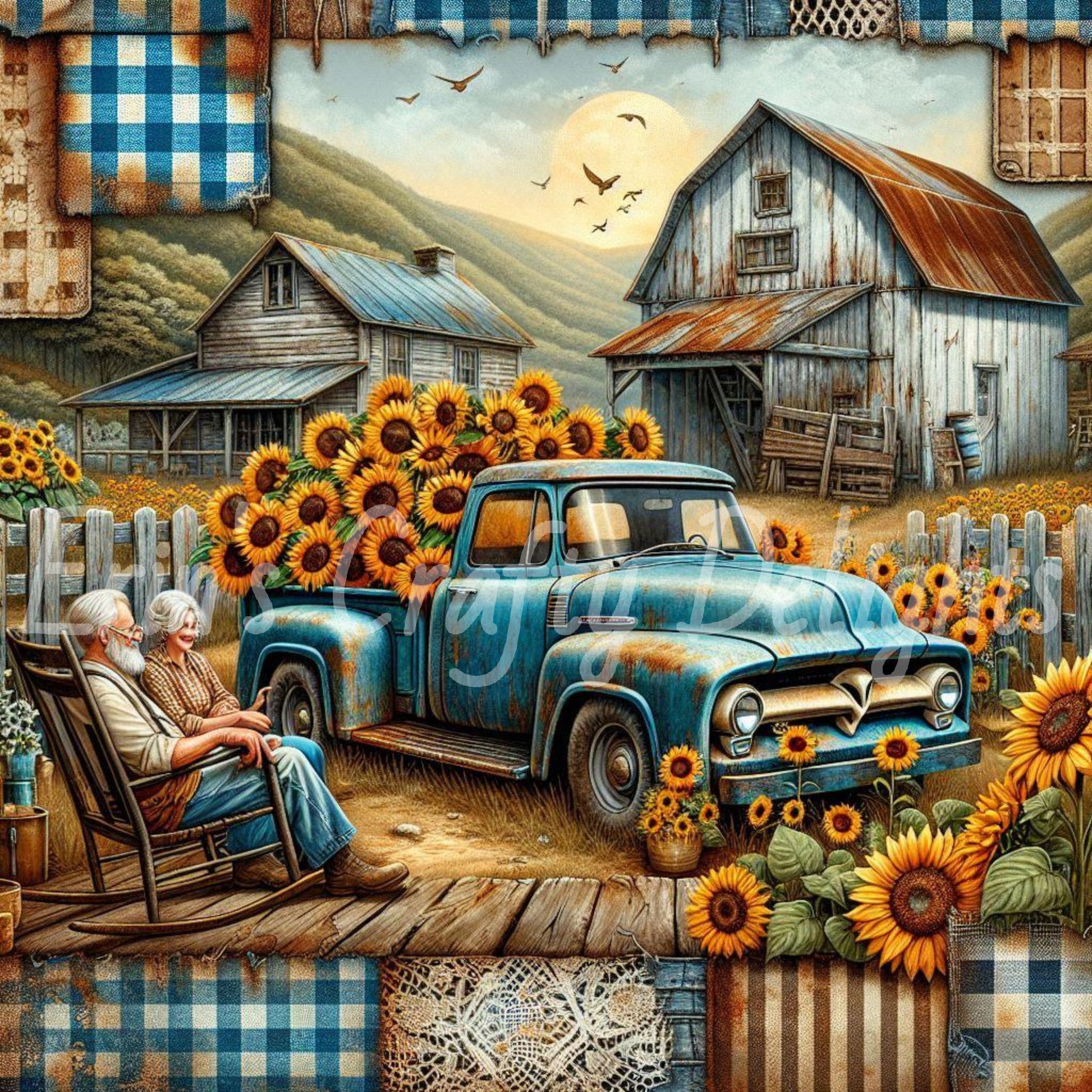 Blue Gingham Truck Set 1