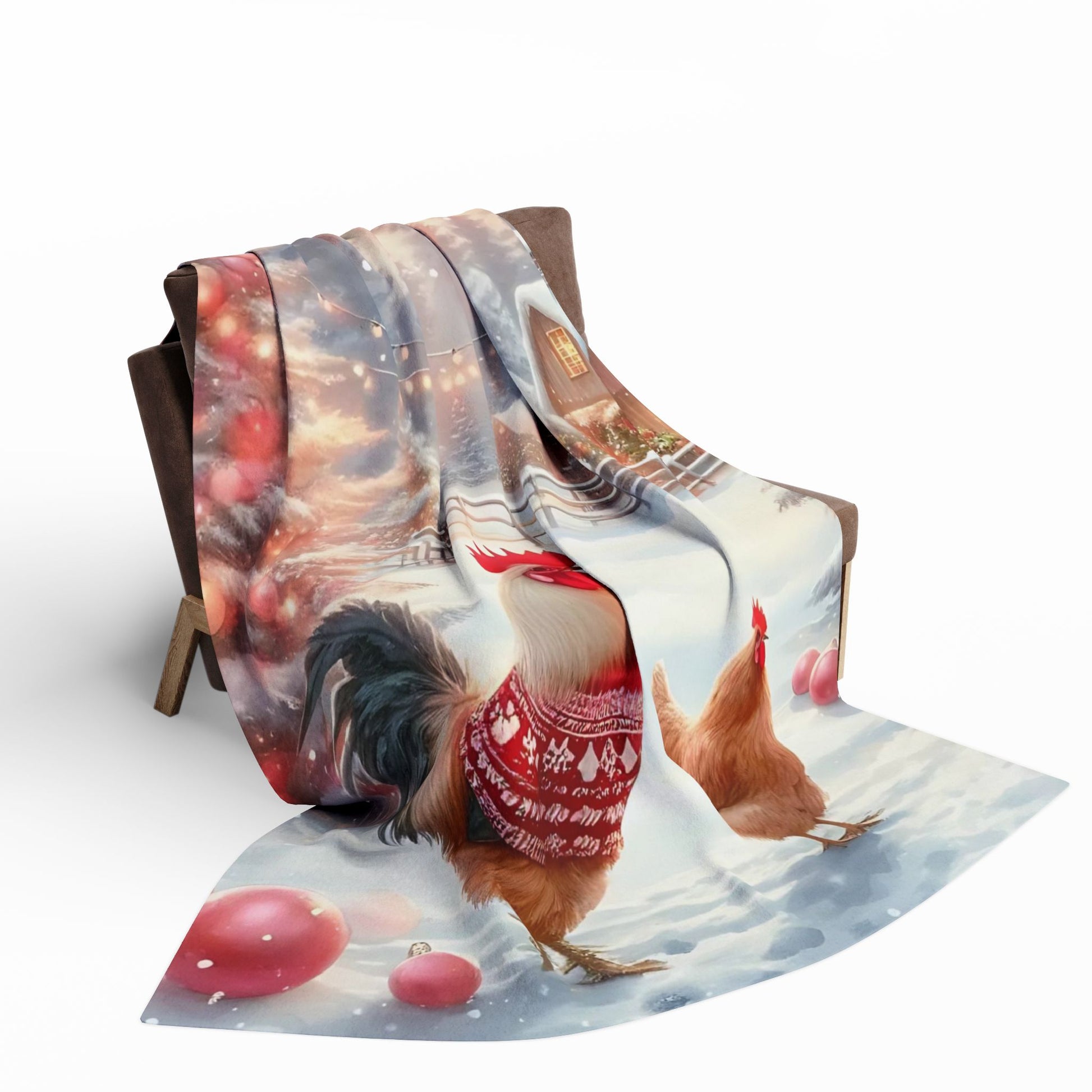 Fleece Blanket - Christmas Chickens in Sweaters on Christmas Decorated Farm