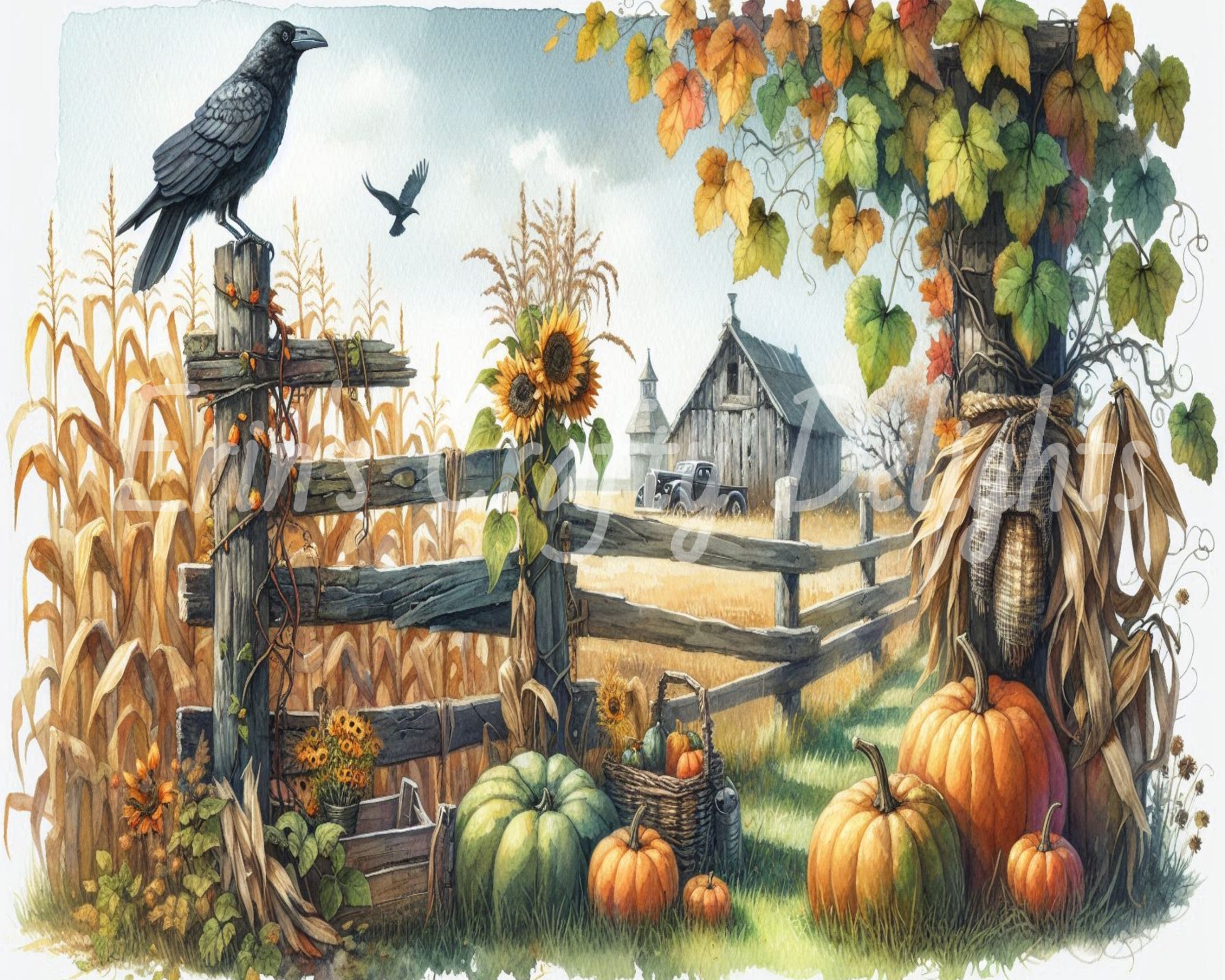 1 MS Crow, Pumpkins & Truck Mix Size Downloadable Printable Set