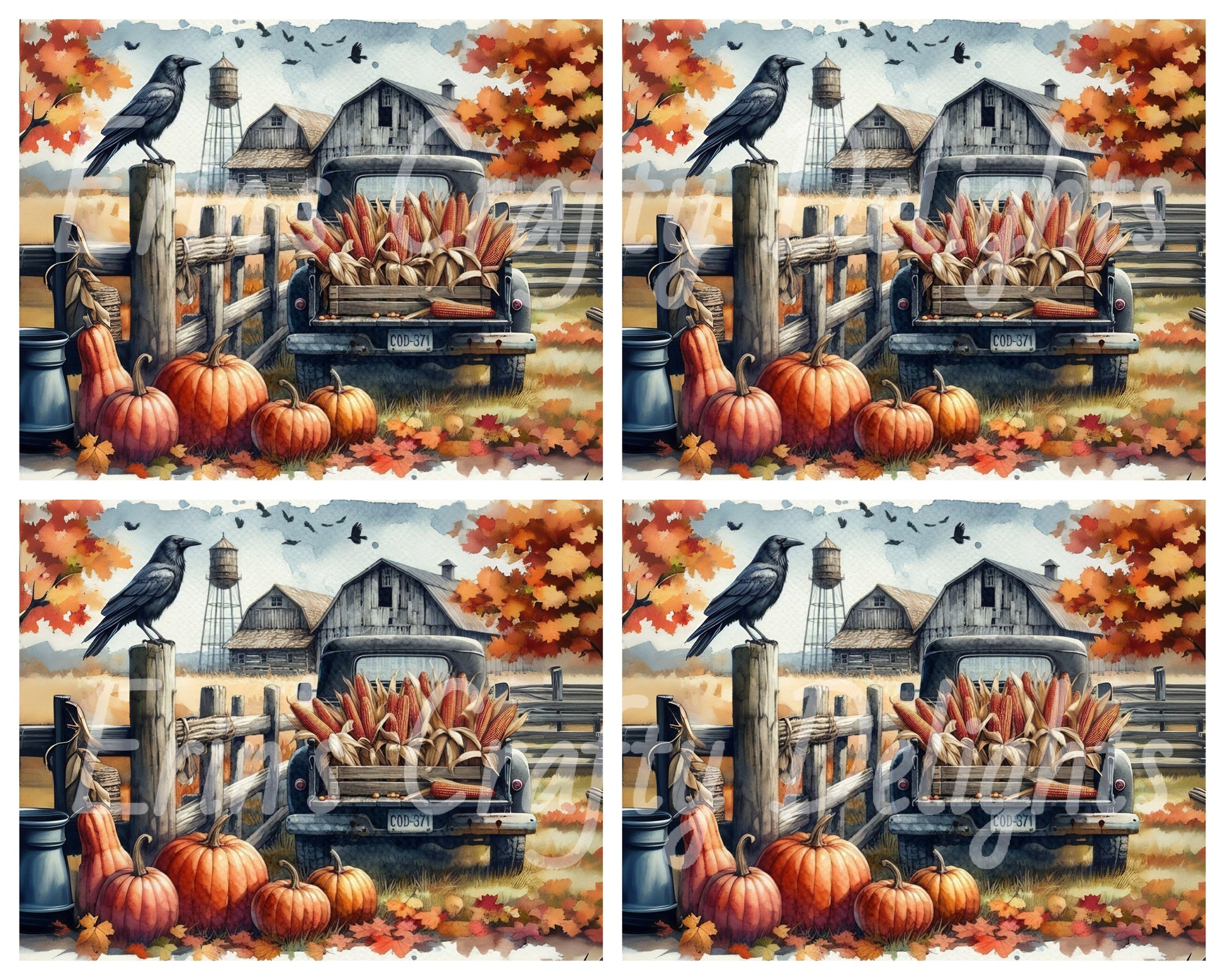 9 MS Crow, Pumpkins & Truck Mix Size Downloadable Printable Set