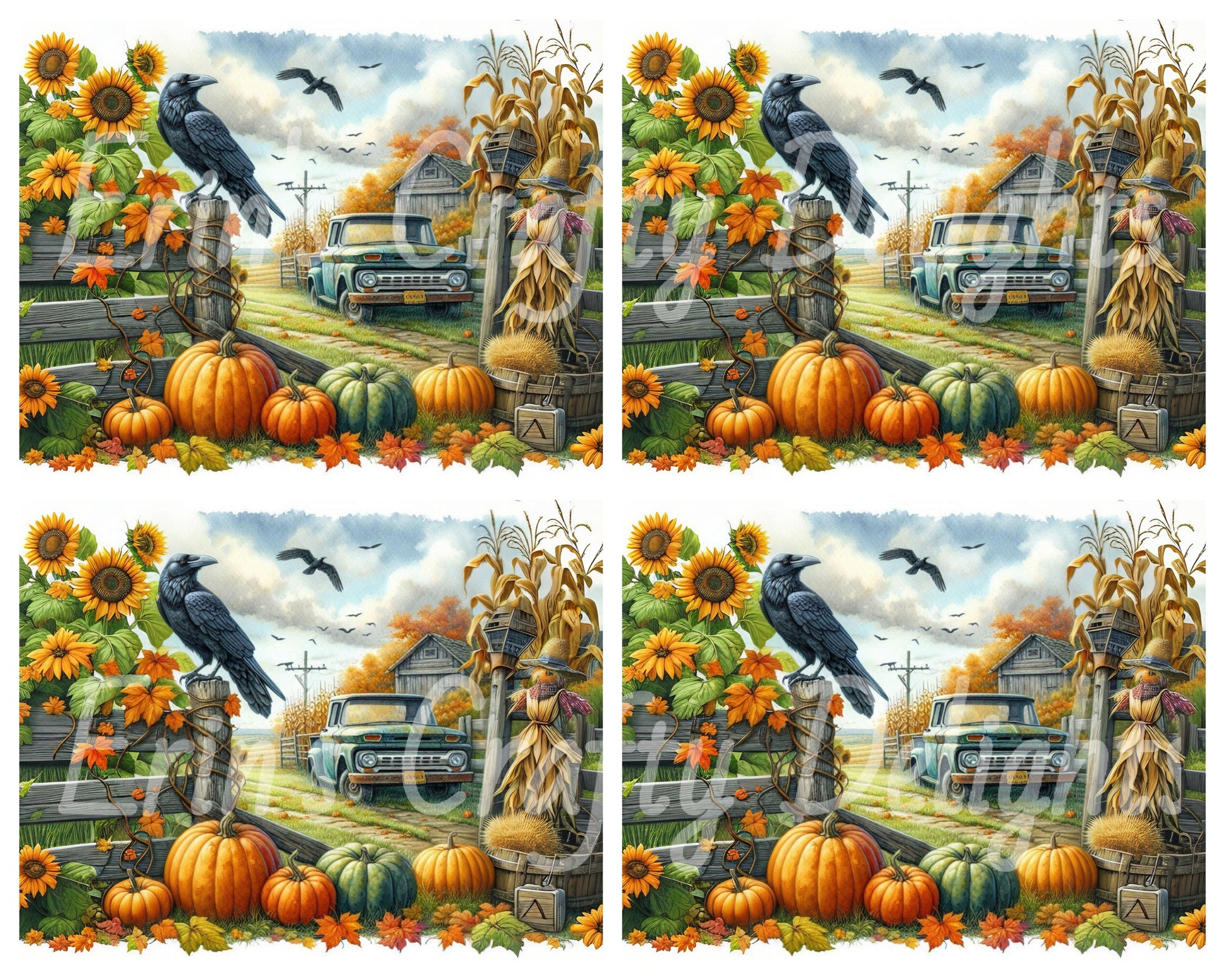 13 MS Crow, Pumpkins & Truck Mix Size Downloadable Printable Set