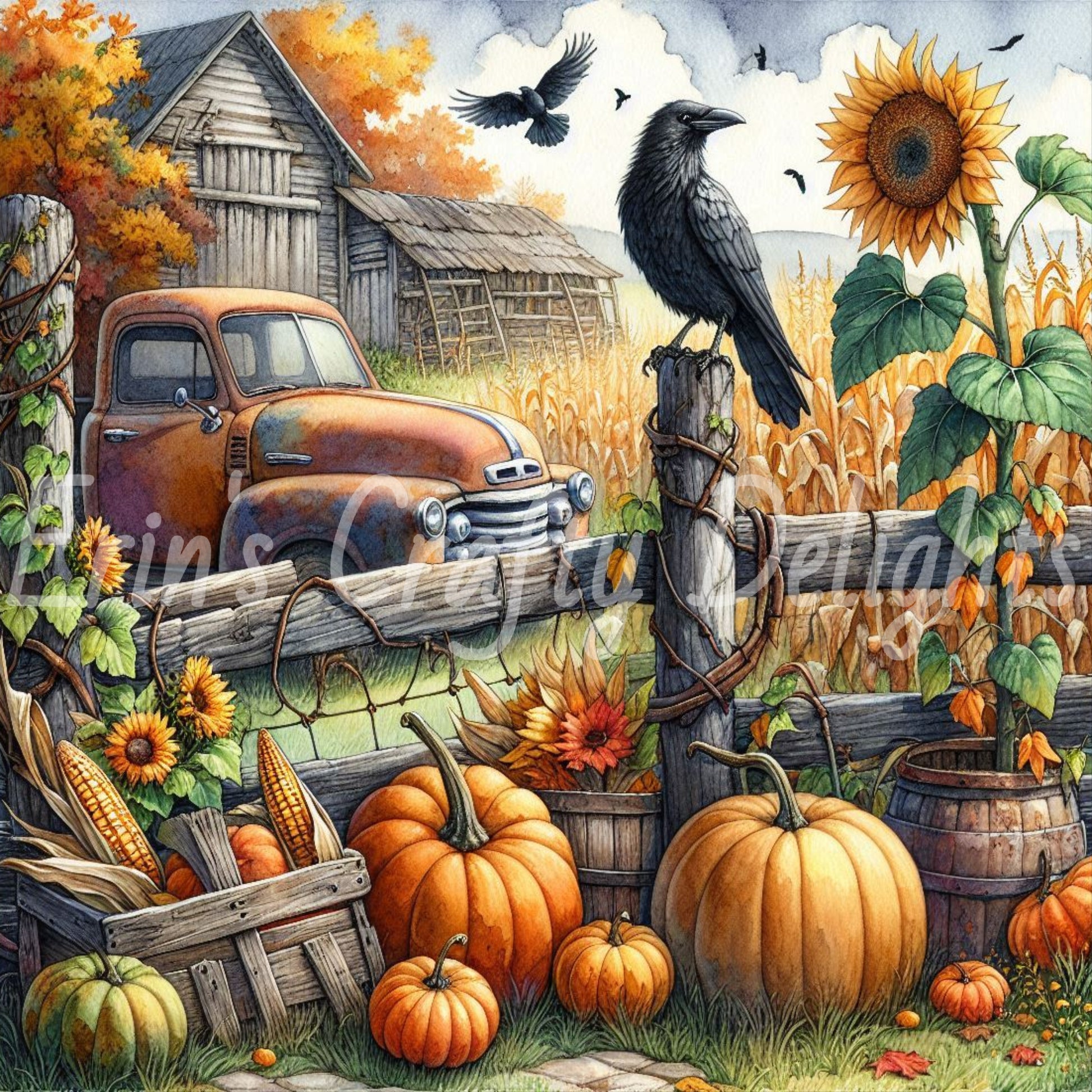 6 MS Crow, Pumpkins & Truck Mix Size Downloadable Printable Set