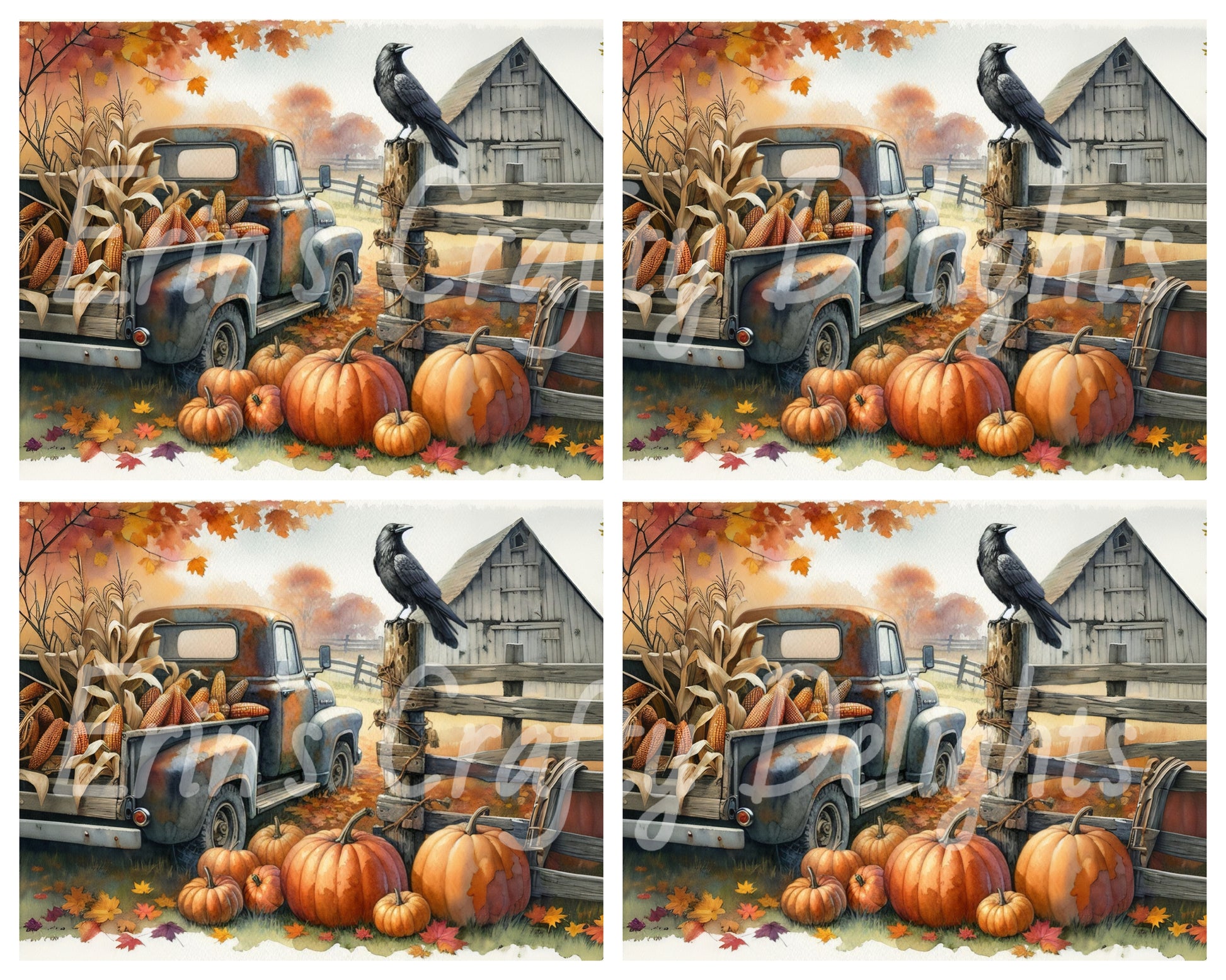 8 MS Crow, Pumpkins & Truck Mix Size Downloadable Printable Set