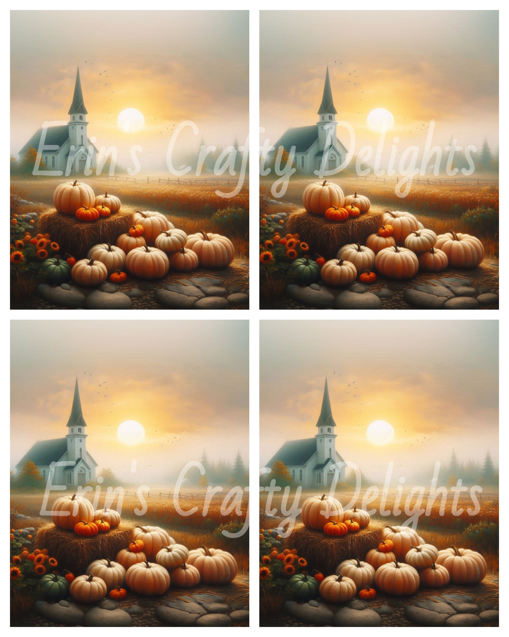 Foggy Fall Morning Church Set 7