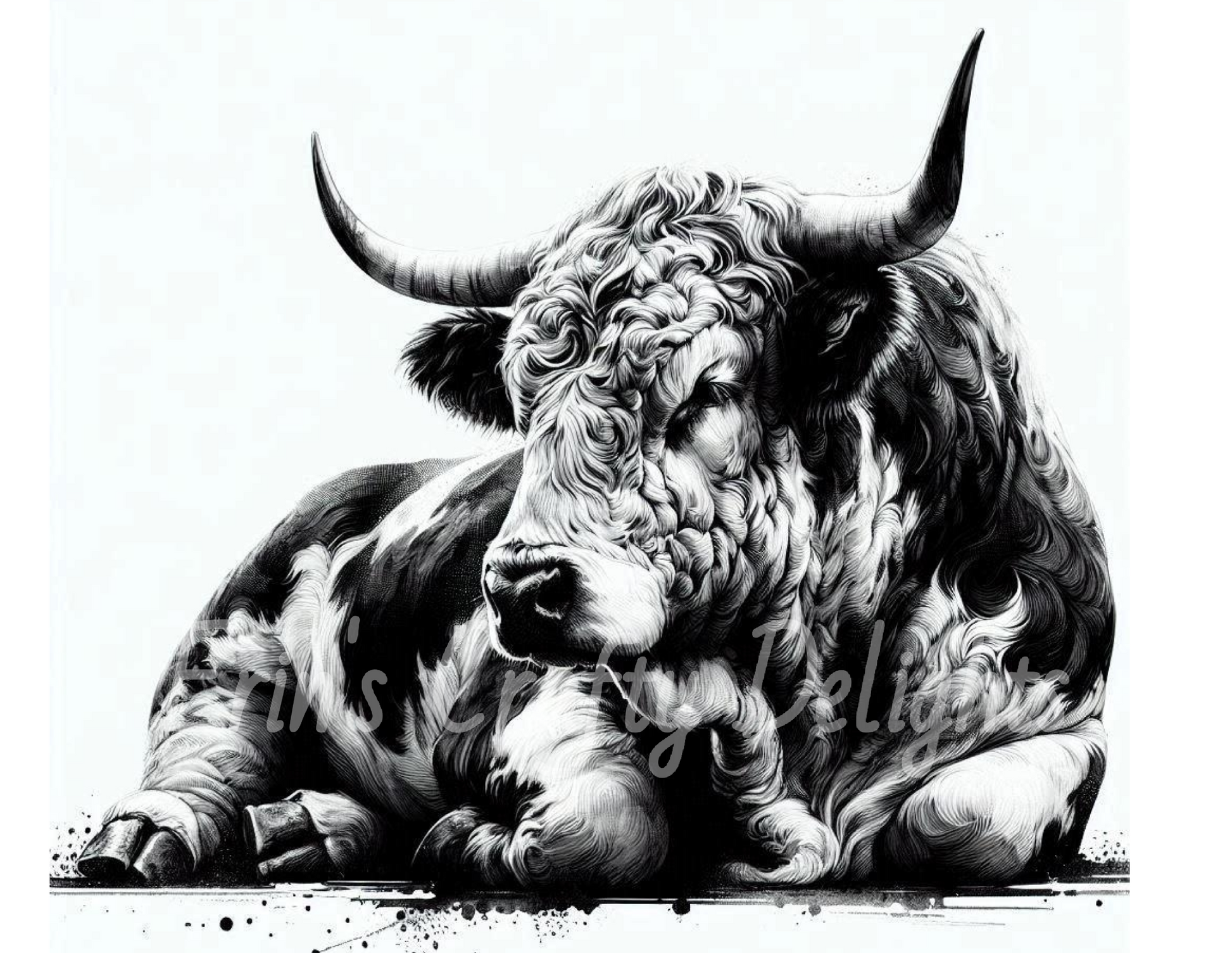 Big black and white bull printable. Comes as an 8x10 and 2 different size transparent backgrounds. 3 files.