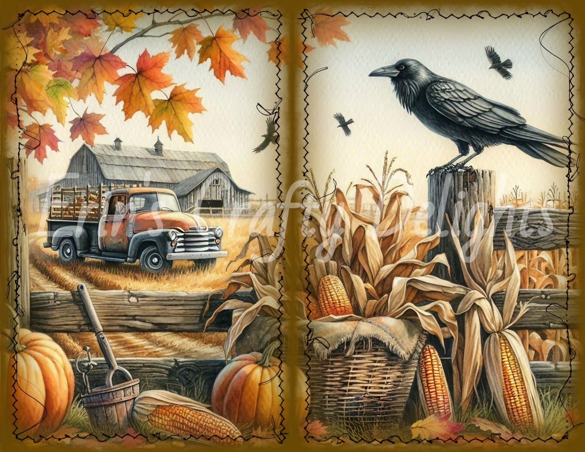 • 12 page, 24 images I Love Fall Junk Journal Half Page Set (Mix & Match).