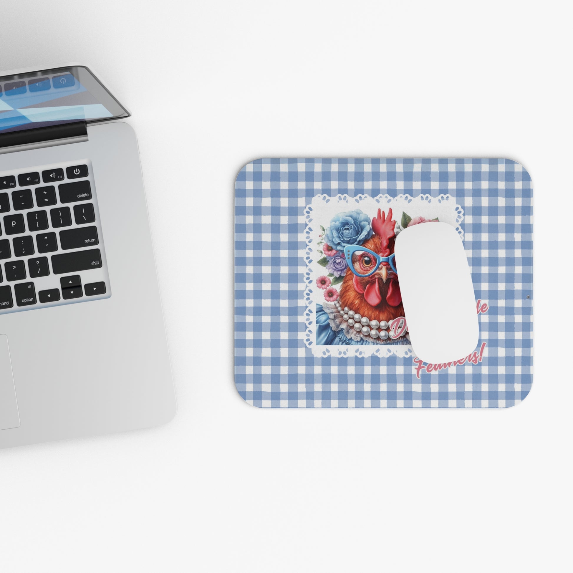 Mouse Pad - Don't Ruffle My Feathers Dressed Up Red Hen Gingham Design