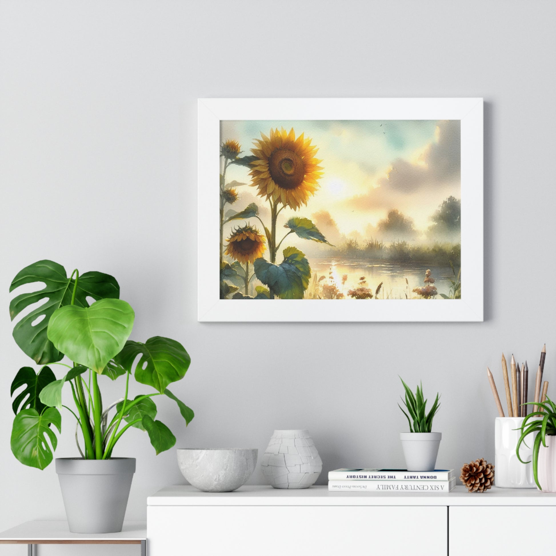 Bring the beauty of Sunflower Creek into your space with this framed horizontal poster. The vibrant colors and serene design will create a peaceful atmosphere in any room. Perfect for nature lovers and those who appreciate floral art. Ideal for decorating homes, offices, or as a thoughtful gift for birthdays, Mother's Day, or housewarmings.