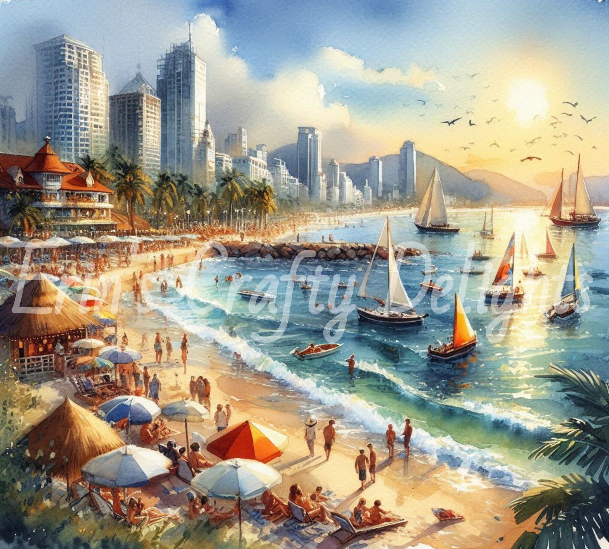 2 Sq Vintage Summer at the Beach 1940s 8x8 Printable