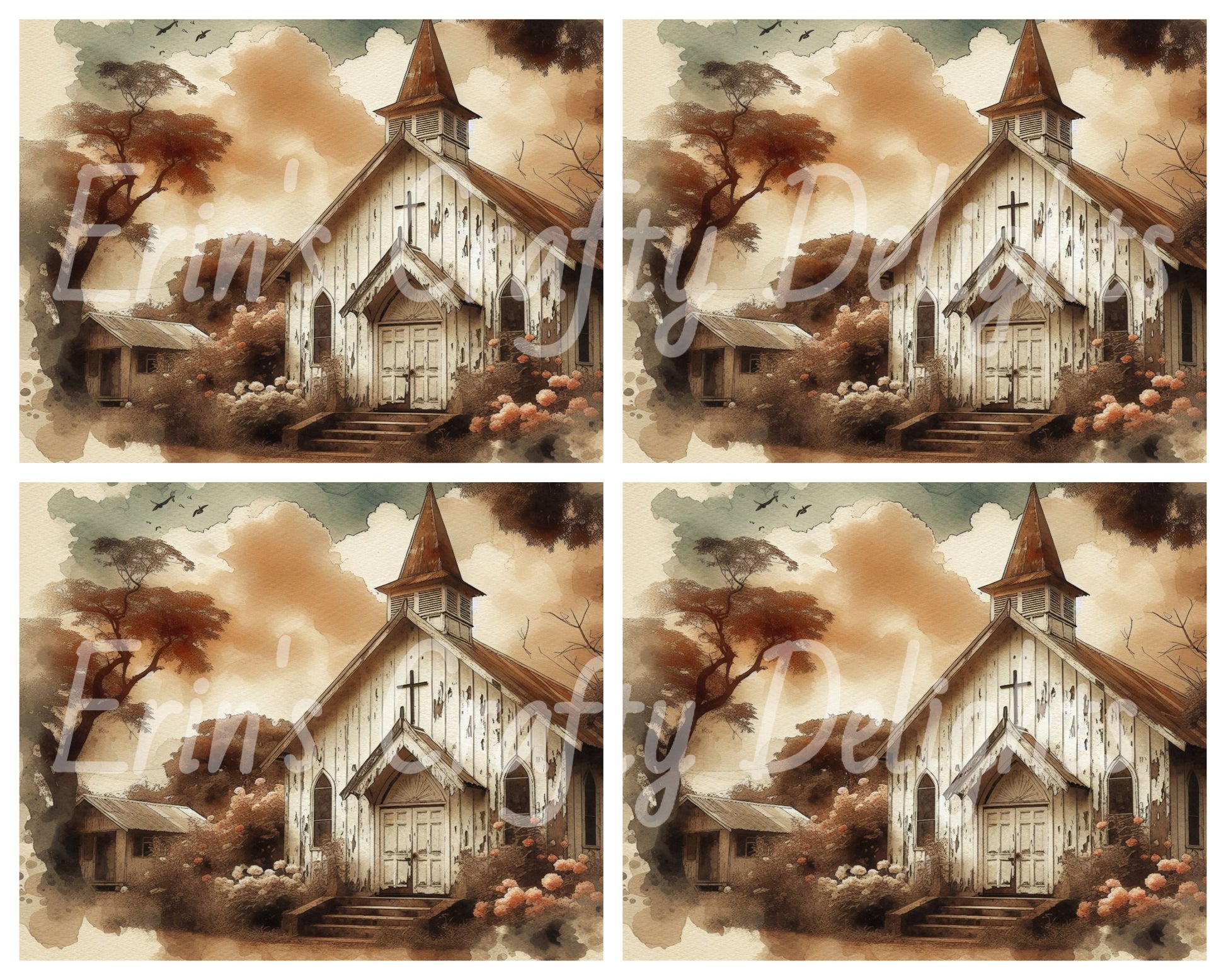 Sweet little churches in the woods. Comes with Freeform, 8" square, 4 - 4x6, 8x10 L and 8x10 portrait sizes.